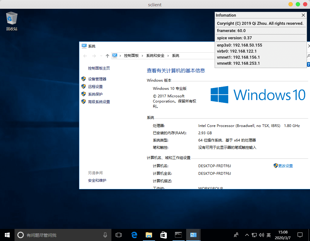 连接Windows 10 虚拟机